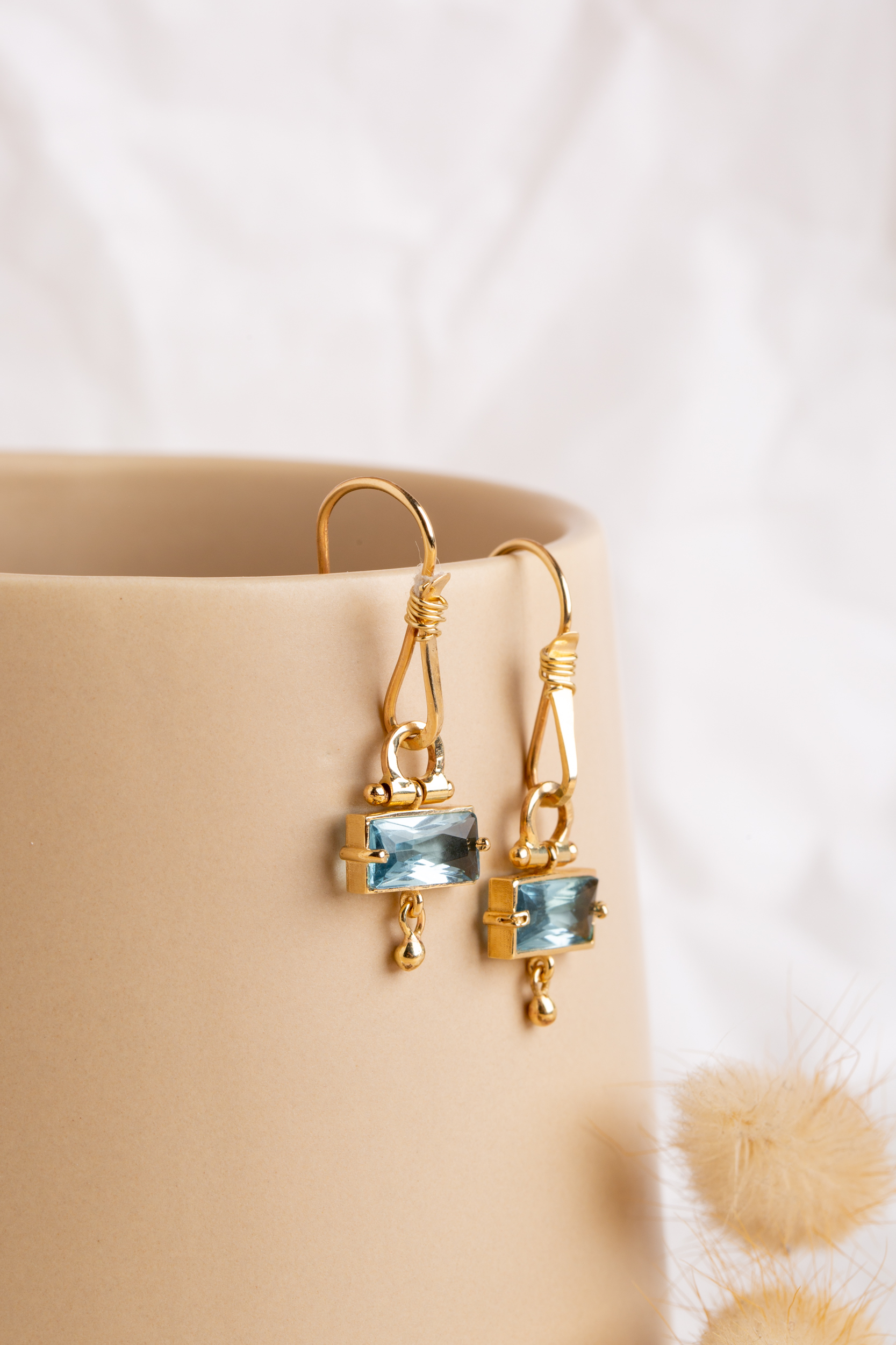 14K gold earrings set with blue topaz stones Catalog No. 9897 Contact us for additional information, inventory status and delivery time