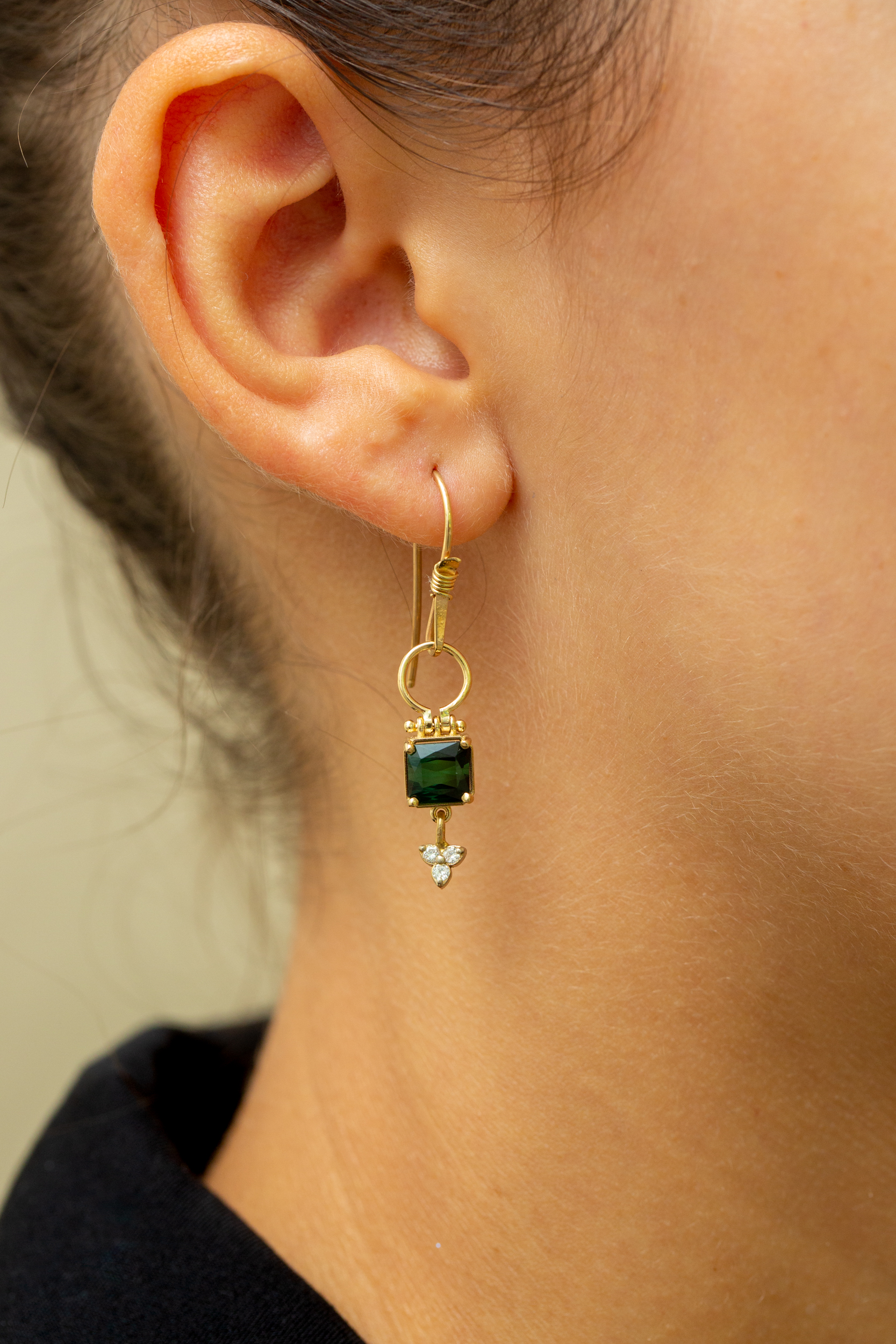 14K Gold Earrings set with Diamonds, Chrome Tourmaline
