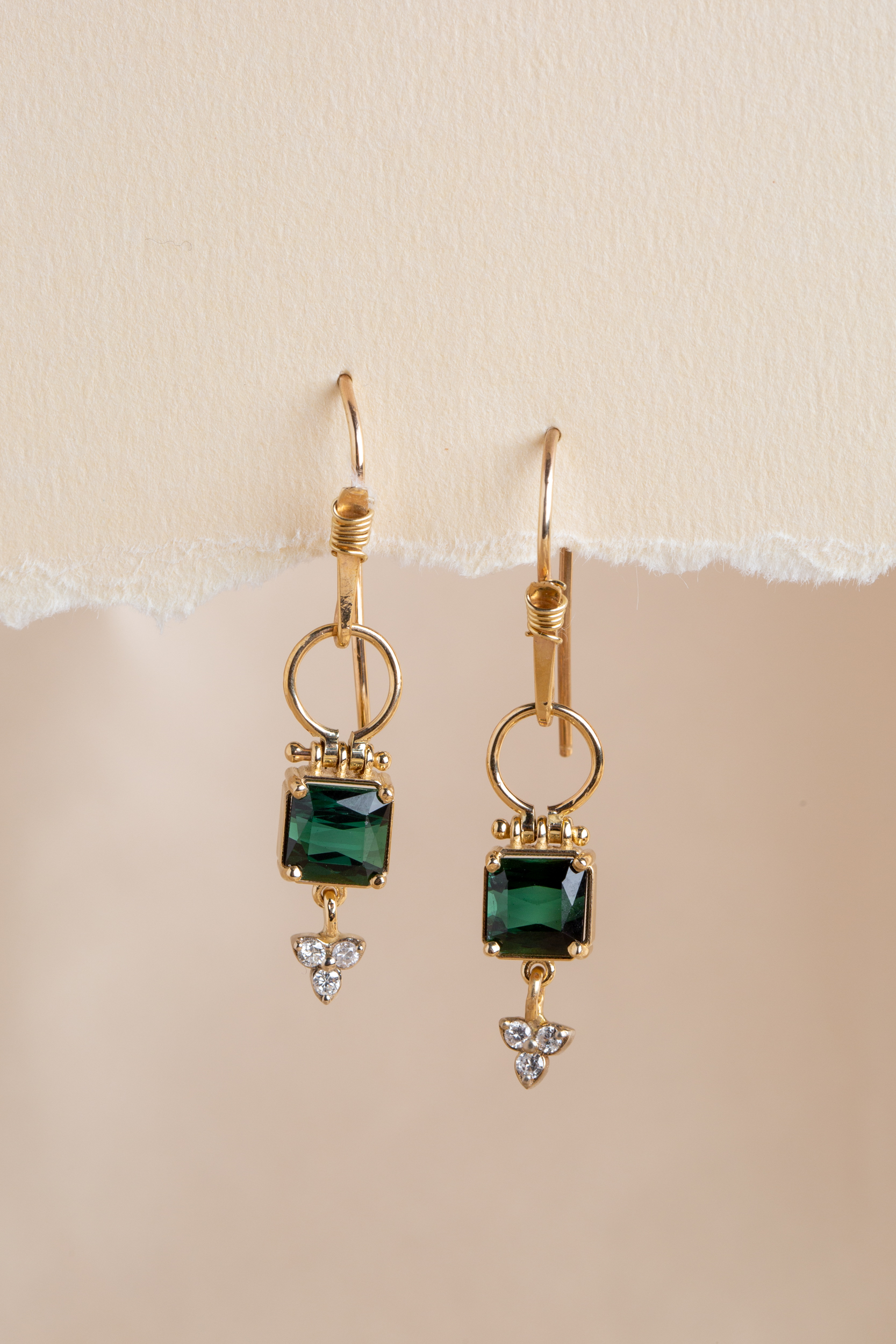 14K gold earrings set with 0.18 ct diamonds and chrome tourmaline stones