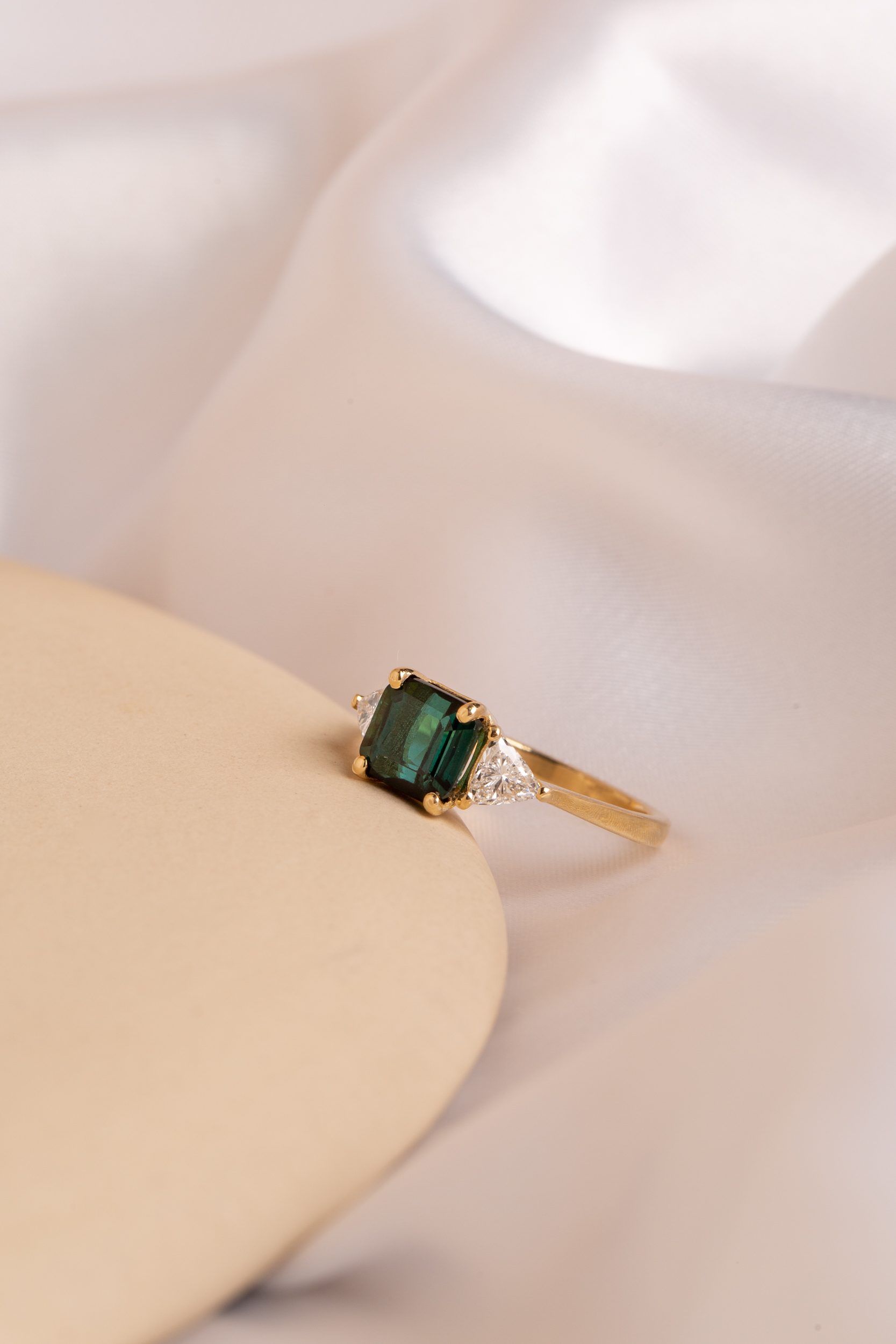 14K gold ring set with 0.30 ct lab diamonds and tourmaline stone