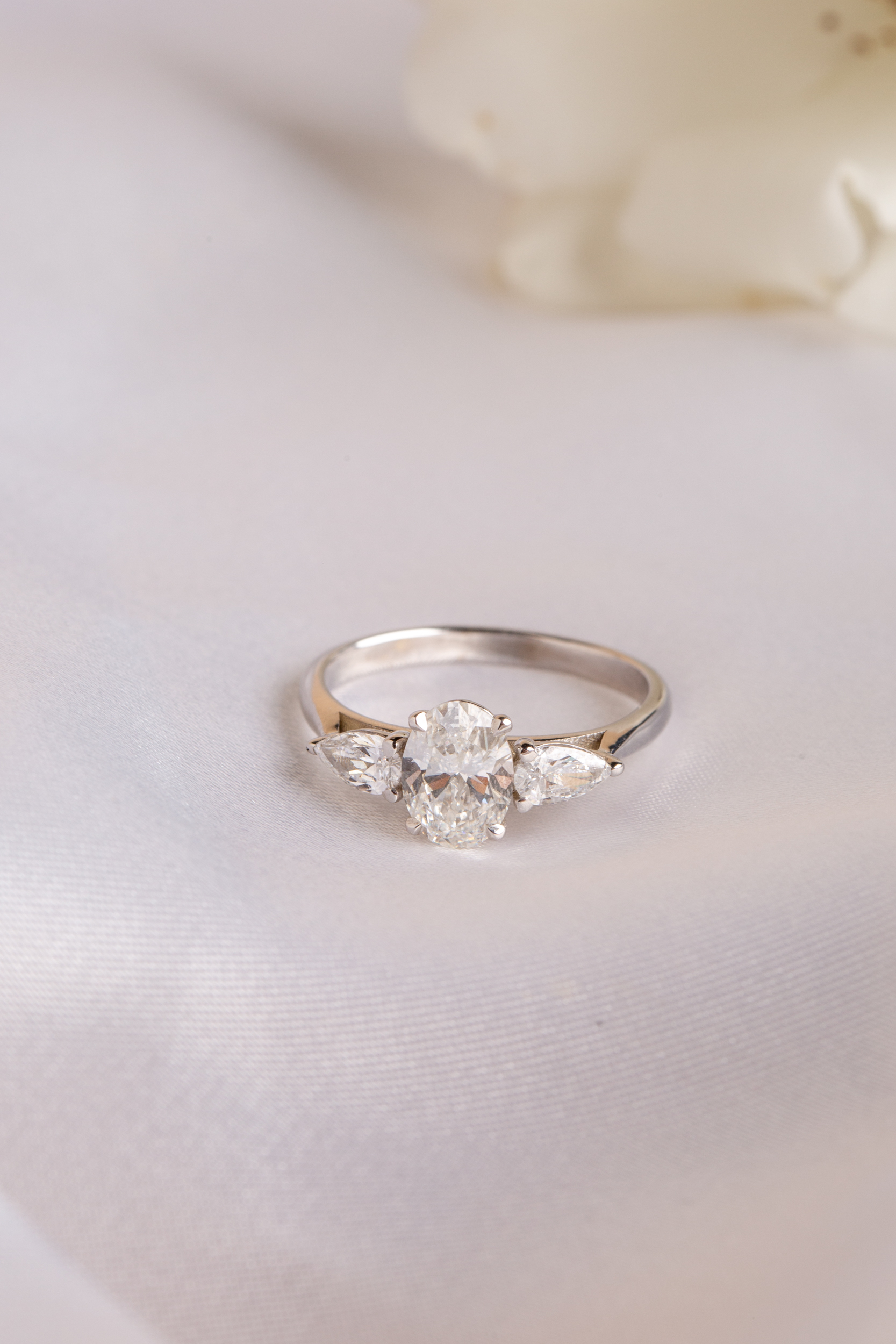 14K white gold ring set with lab 1ct + 0.30 EVS1 diamonds